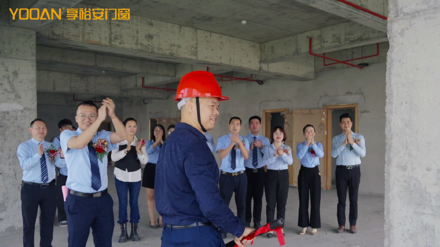 在万众期待的喜悦氛围中,董事长黄秋盛先生为开工挥下吉祥锤,以锤击墙体的方式敲响新址装修开工的美好序章。金锤落地,紫气东来,大吉大利!至此,享裕安门窗营销中心开工仪式圆满结束。