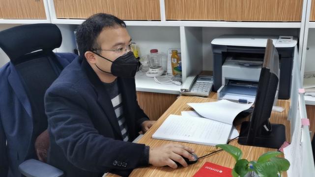 图为重庆农商行九龙坡支行客户经理罗淳正在撰写重庆亚德科技股份有限公司的贷款授信资料。