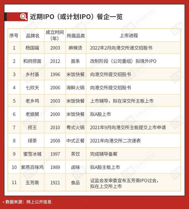 餐饮业内人士曾将2020年定义为中国餐饮的资本化元年,以4.67万亿的行业市场规模为基石,餐饮业突破十万亿大关需要的只是时间。虽然受疫情反复和商业场所封控影响,中国餐饮板块整体市场表现不佳,但仍旧不能阻挡众多餐饮企业付港上市的热情与迫切。2022年至今,除了“三顾港交所”递表IPO的绿茶已通过聆讯之外,还有港式火锅捞王、杨国福麻辣烫与和府捞面等十余家餐饮企业在港交所门外排队等候。