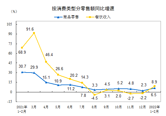 根据国家统计局最新的公开信息显示,1—2月份,餐饮收入同比增长8.9%,总额为7718亿元,相较于2021年8-12月份月均消费负增长,2022年的Q1暖风对餐饮业而言,已经吹起来了。