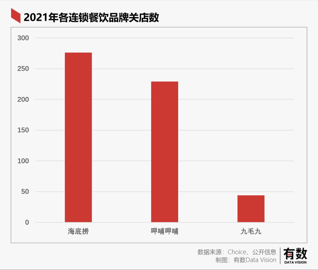 在香港上市的三家连锁餐饮品牌中,除九毛九之外,海底捞和呷哺呷哺关店数量均超过两百家,以此来降低自身的成本压力。