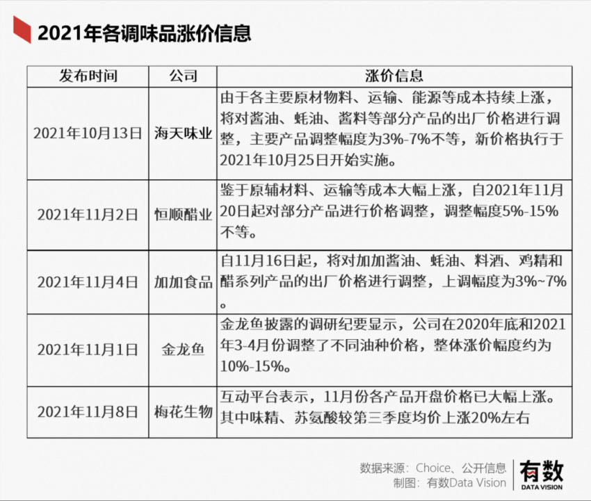 随即而来的是各大调味品龙头也纷纷宣布涨价。如海天味业,恒顺醋业,金龙鱼等。不断上涨的调味品的价格,也将进一步加大连锁餐饮在成本端的压力。