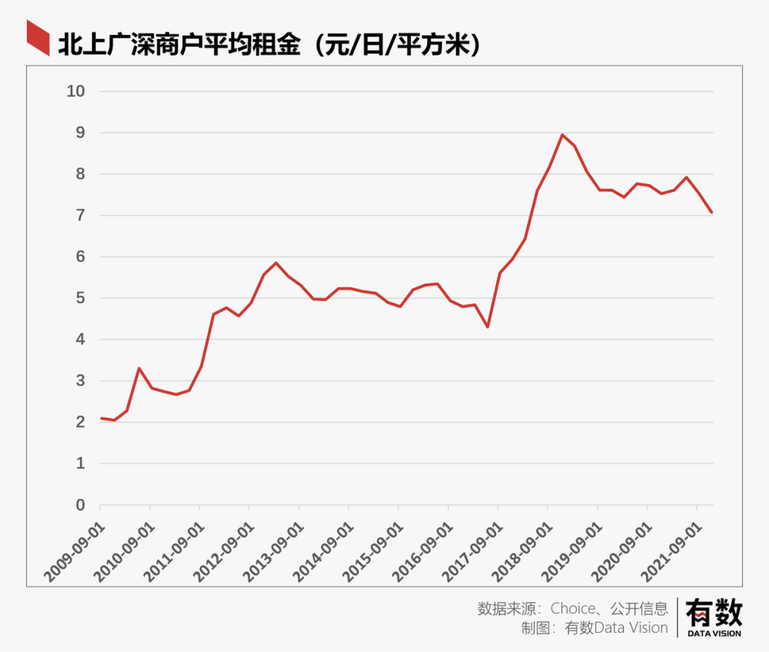 最典型的就是房租,这也是连锁品牌面临生存的第一座高山。目前,一线城市房租从2009年的2元/日/平米到现在已经突破7元,涨幅约3.5倍。很多新的连锁餐饮品牌都从一线城市出发,面临的成本压力更严峻。