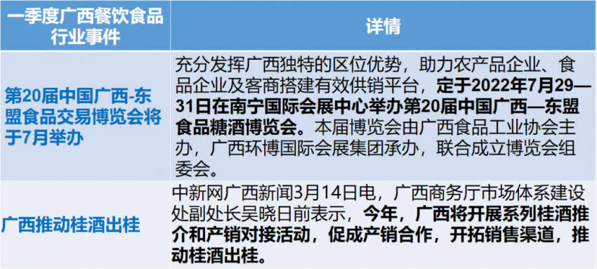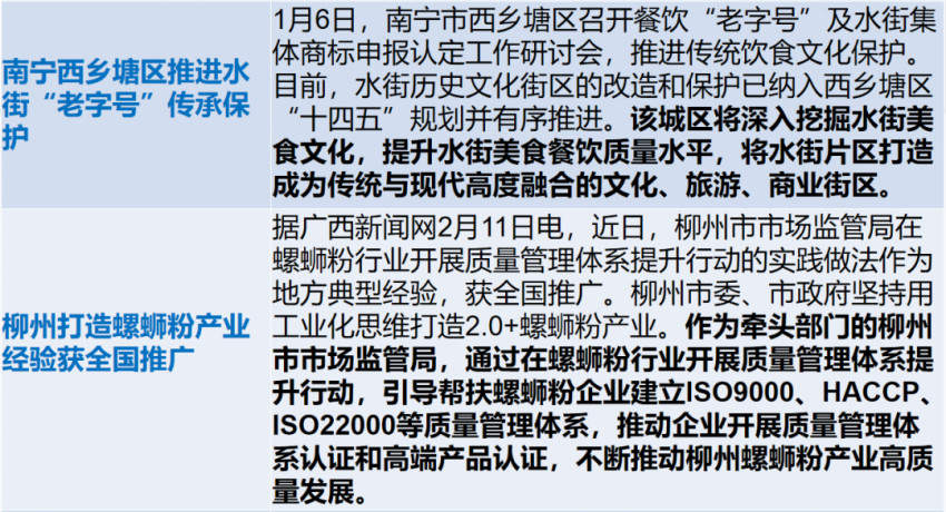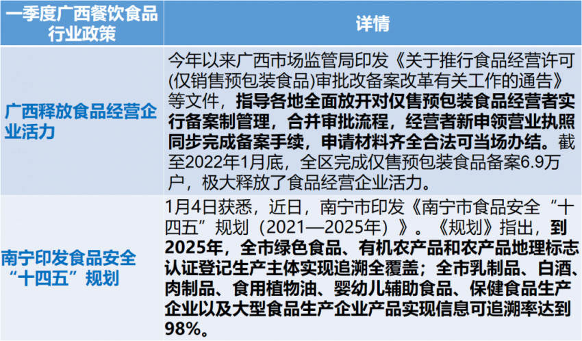 在本季度中,螺蛳粉作为广西餐饮食品行业的黑马,国内外销量都获得新的突破。下面我们从行业政策、事件、数据、企业几个层面,看看广西餐饮食品行业一季度的动态和趋势。