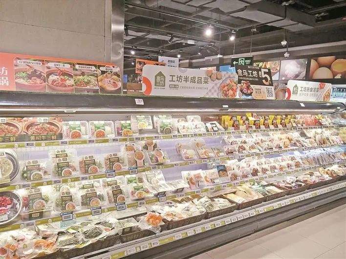 据了解,盒马鲜生冷冻预制菜品种有200个左右,应季售卖的约为100个,冷藏预制菜货柜保持在150个。