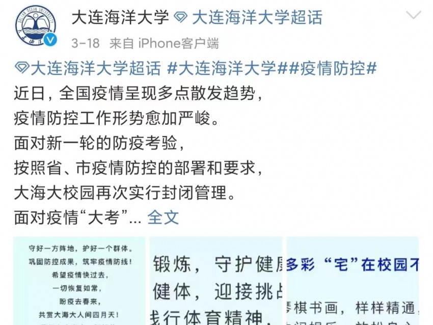 大连高校3月开始封闭管理
