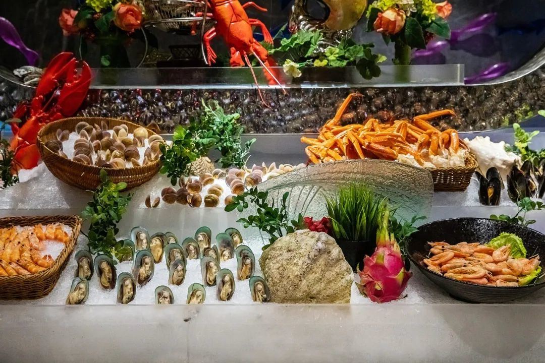 超大的餐饮空间,装修豪华,食材高档。各种海鲜、肉类、水果和甜点都可以免费食用,包括哈根达斯,它在当时被认为是冰淇淋中的奢侈品。