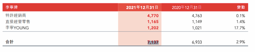 不久前,李宁公布了2021年全年业绩报告:公司营收超200亿元,同比增长56%;净利润达到40亿元,同比增长了136.1%。门店数量方面,截止至2021年底,李宁共有7137家门店,净增204家,其中,李宁品牌共有5935家;李宁YOUNG共有1202家。