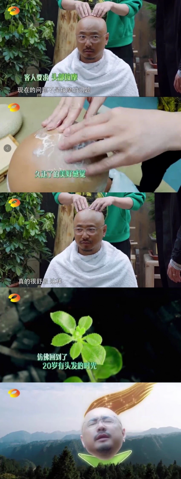 作为节目组里的玩梗担当,黄磊老师可是当仁不让了,同时他也是一副老父亲的样子用倍轻松头皮按摩器守护了彭彭岌岌可危的发际线。
