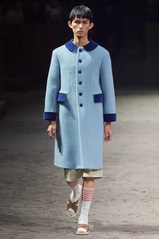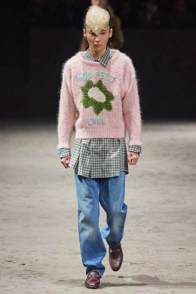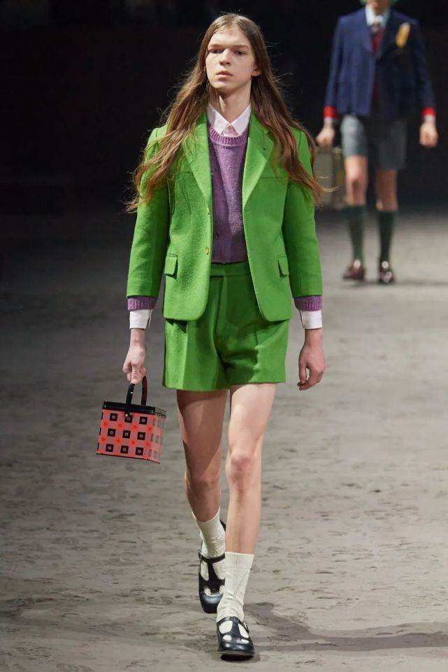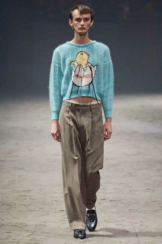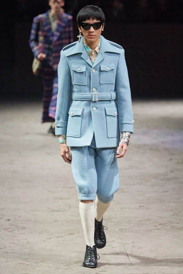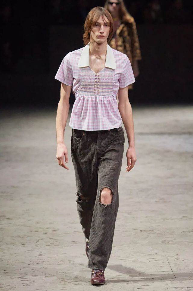 在Gucci这次秋冬大秀中,有一大串中性化的男士新品,都证明了这个观点。