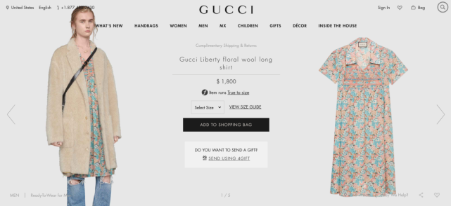 请不要怀疑这是场乌龙,或者是品牌特意制造的传播话题。时有趣通过进一步深扒发现,这条裙子赫然挂在官网售卖页面上,售价为2600美元(约合1.75万人民币),而且还不止一条。(另一条裙子售价为1800美元)