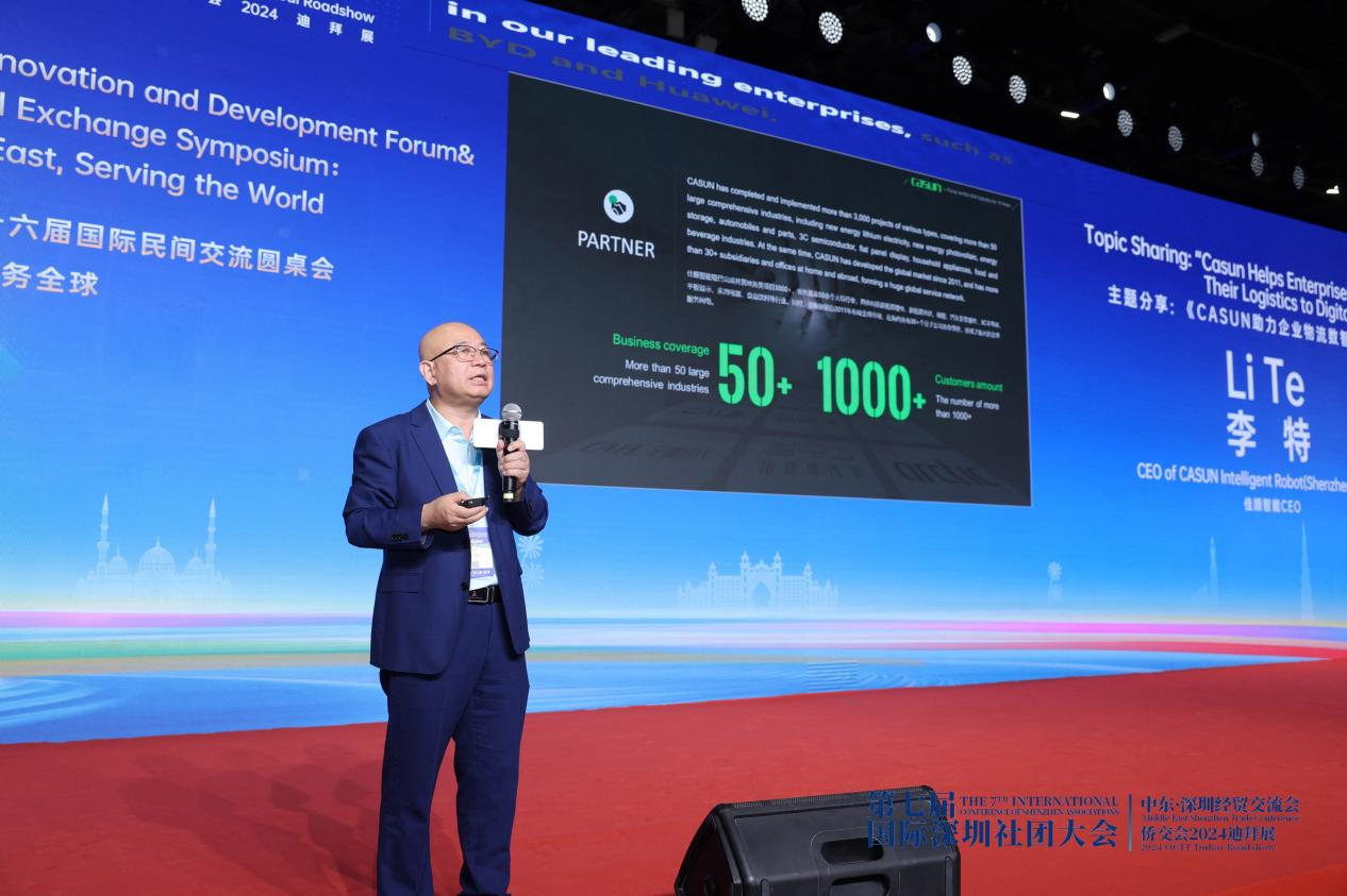 佳顺智能CEO李特围绕《CASUN助力企业物流数智化升级》进行了主旨演讲,他介绍了AGV机器人在物流领域的应用案例。从早期的计算机到自动化设备,机器人拥有大脑、眼睛、机器人之间的交互语言以及各种动作,集合了多种功能。移动机器人可以在智慧工厂、无人工厂、智能车间、智能物流等多场景应用,实现整体数字化和智能化。
