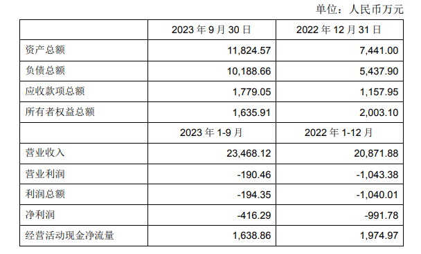 根据新乳业披露,2022年,重庆瀚虹营收2.09亿元,净利润-991.78万元;2023年前三季度,其营收2.35亿元,净利润为-416.29万元。