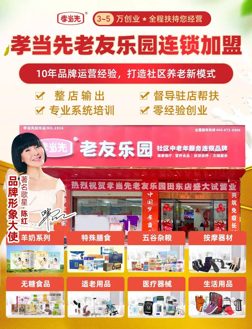 3.扶持政策:孝当先为加盟商提供全方位的扶持,包括专业评估团队进行商圈调研评估、提供专业的装修设计服务、完善的培训体系、高效统一的货源供应体系、全国统一的店铺运营指导手册、各种宣传物料及促销活动策划方案等。此外,总部督导长期、定期驻店指导,为门店经营保驾护航。