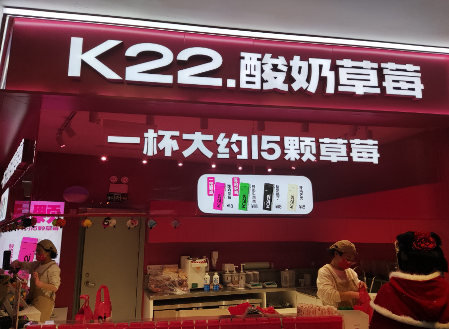 K22.酸奶草莓是成立于2020年的酸奶水果饮品品牌,主打爆品一杯大约15颗草莓的酸奶草莓,热门爆品墨西哥的牛油果的酸奶牛油果,高品质产品,18元不怕比。K22凭独特且专属的粉色与大方杯的品牌标识加上高品质产品而广受好评。
