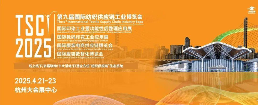 TSCI 2025(第九届)国际纺织供应链工业博览会以“构建纺织闭合生态圈,共赴智能纺织新世界”为主题,整合五大产业资源,链接纺织供应链上下游,将于2025年4月21-23日 杭州大会展中心盛大开展。