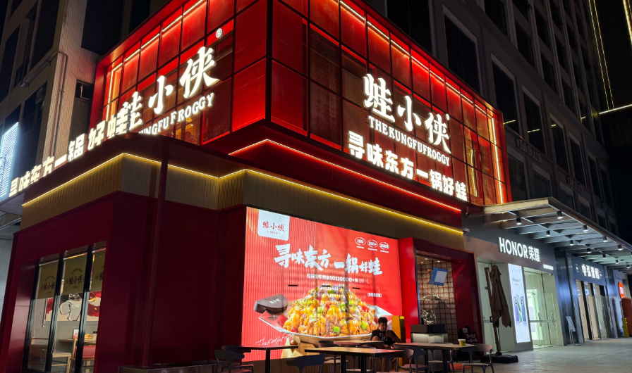 旗下餐饮品牌“蛙小侠”以原创功夫主题餐厅为市场切入点,并以特色铁锅牛蛙作为主打,抢占市场。餐厅通过自有IP形象结合现代搭建别具充满“侠风”特色的用餐场景,呈现给消费者的不单是一家餐厅,更是在积极打造独具特色的IP文化品牌。