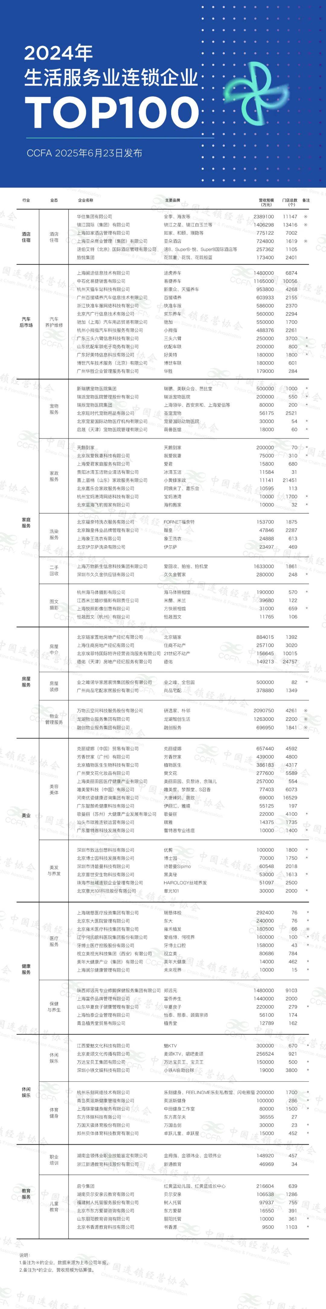 2025年,中国连锁经营协会(CCFA)联合抖音生活服务、高德地图、美团等机构共同开展了“2024年生活服务业连锁企业Top100”统计调查工作,旨在了解生活服务业年度经营情况变化.
