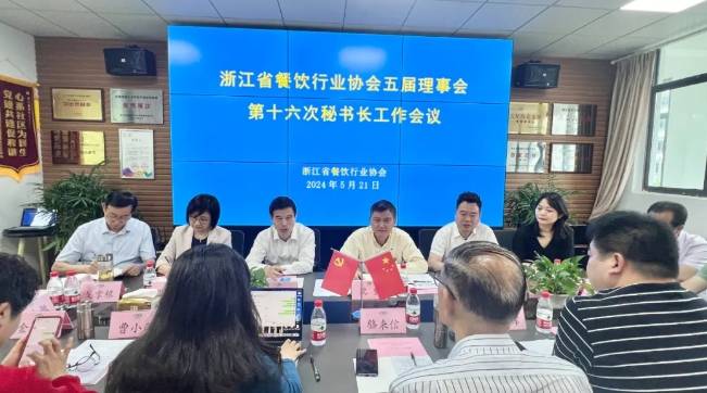 5月21日,浙江省餐饮行业协会第五届理事会第十六次全省秘书长工作会议在杭州顺利召开。正在杭州出席由浙江省商务厅、杭州市人民政府、中国饭店协会、中国烹饪协会等单位共同主办的2024“味美浙江”