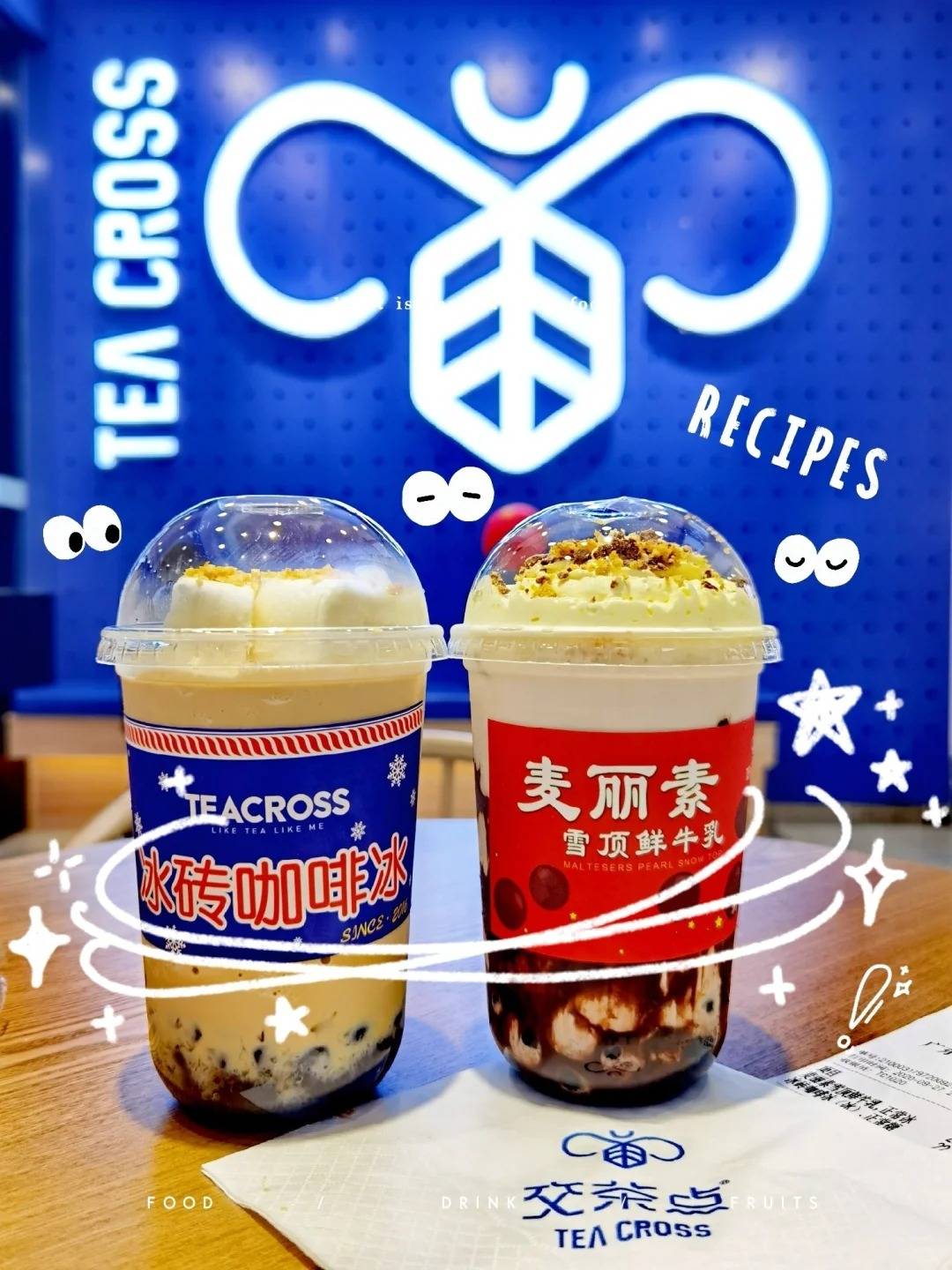 交茶点的产品以“经典+创意”为核心。基础款涵盖奶茶(如珍珠奶茶、红茶玛奇朵)、果茶(如柠檬绿茶、芒果奶盖),同时结合流行元素推出季节限定款(如夏季杨梅冰茶、冬季热烤奶)。与光明冷饮合作的联名系列(如奶砖奶茶、盐水棒冰冰沙)是招牌,将传统冷饮融入茶饮,口感层次更丰富。所有原料(茶叶、奶精、水果)由总部统一配送,确保全国门店口味一致,单杯原料成本控制在3-5元,性价比突出。