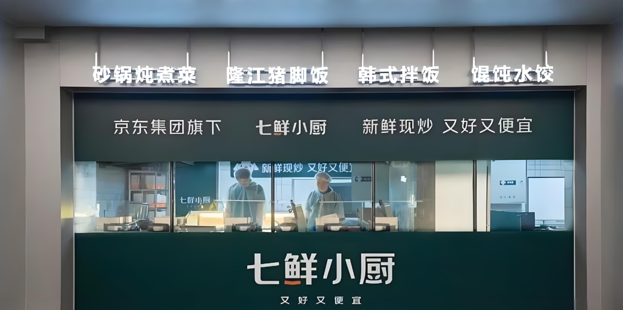 作为京东七鲜超市重点孵化的餐饮子品牌,七鲜小厨自2017年伴随七鲜超市首店开业同步亮相。它初期以社区生鲜餐饮定位切入市场,凭借独特的商业模式迅速站稳脚跟。依托京东强大的供应链优势,七鲜小厨逐步构建起"生鲜食材 + 现场加工"的差异化模式,在华北地区成功开出20余家门店,成为社区居民日常消费的热门选择。
