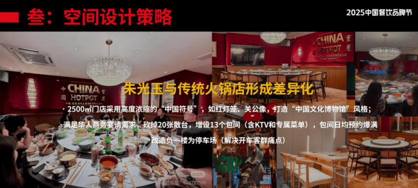 在空间设计策略上,朱光玉国内的门店更侧重社交属性,但是在海外,我们则更突出商务属性和家庭聚餐属性。比如,我们吉隆坡2500平的门店,就把二楼全部改造成带KTV的包厢。