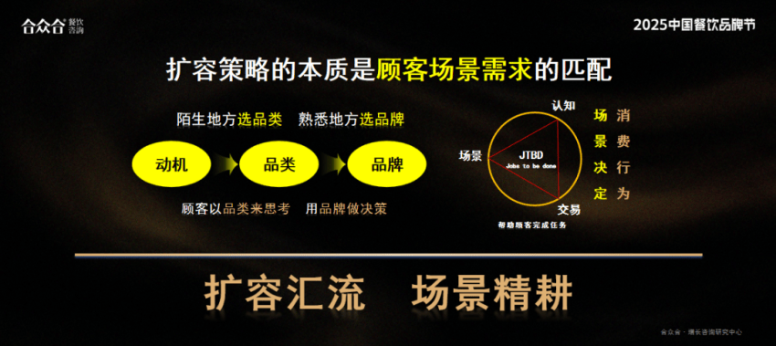 扩容策略的本质是顾客场景需求的匹配。大家都是陌生的地方选品类,熟悉的地方选品牌。比如我们从外地来广州,想吃一顿粤菜,可能知道陶陶居、广州酒家。但是我想在这里吃一顿江西菜,能报出哪个品牌名字吗?所以,千万不要以为自己的品牌人人都知道,很多细分领域的品牌,别人并不了解。