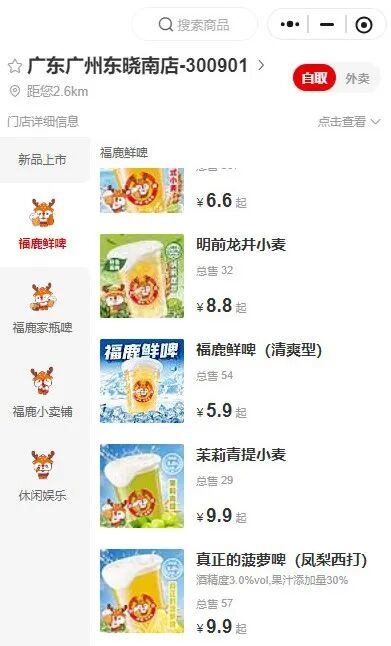 从“鲜啤福鹿家”小程序中可以看到,最便宜的福鹿鲜啤可以做到5.9元/500ml,颇受年轻女性欢迎的果啤、奶啤和茶啤也能保证个位数成交,客单价为17.02元。