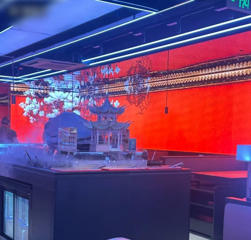 而在门店消费场景的营造上,捞宝街还将老北京风情进行了很好的融合。据不少前往打卡的消费者在社交平台上反馈,捞宝街门店的整个餐饮区由LED屏环绕,画面由一幅描绘京城古建的数字长卷徐徐展开,灯光也会随着画面内容变化,模拟出春夏秋冬的四季流转效果,营造出沉浸式的老北京风情的用餐氛围。