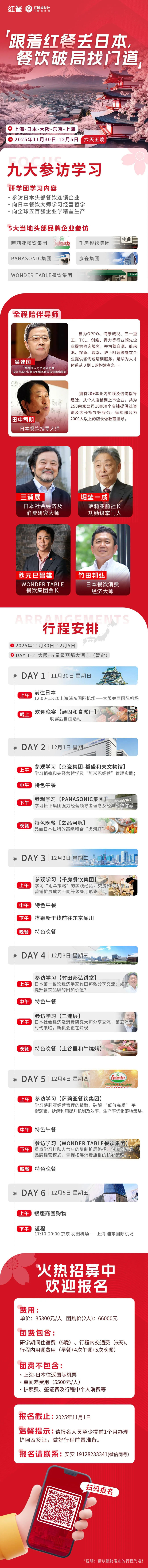 11月日本研学启程 | 6位行业大咖全程领航!红餐带你深度解锁餐饮新思路