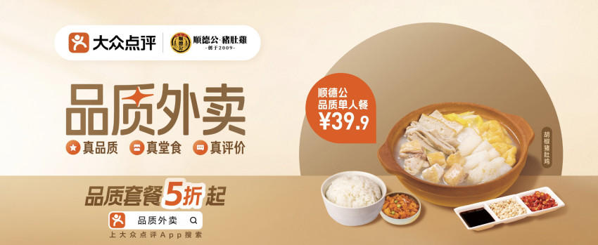 记者注意到,此次新入驻的餐饮品牌多为大众点评平台上的高分堂食热门店,部分更是2025年“必吃榜”上榜门店。以顺德公·广东猪肚鸡为例,其“必吃榜”门店堂食人均消费约98元,而此次在品质外卖平台推出的“招牌一人食套餐”定价仅为39.9元,叠加优惠券后最低可至25元,内含胡椒猪肚鸡等经典招牌菜。