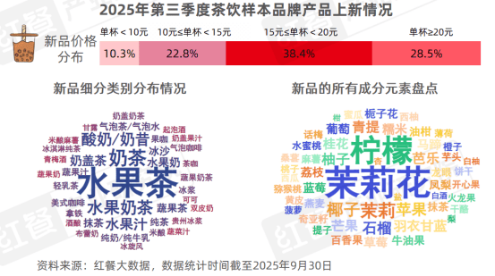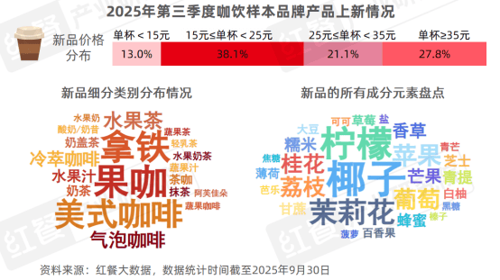 价格分布上,38.1%的新品在15元≤单杯<25元,27.8%在35元及以上。