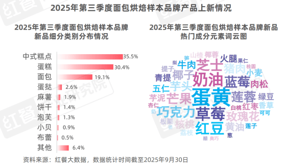 40个烘焙品牌共推出1,025款新品,中式糕点类达364款,占比35.5%。