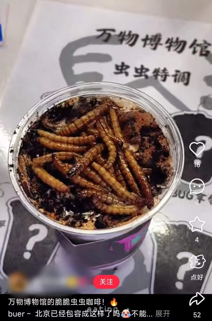 另据红餐网获悉,该展馆除蟑螂咖啡外,还推出了大麦虫咖啡、含猪笼草消化液的特调饮品,以及万圣节限定的蚂蚁风味饮品。尽管这些产品颇具争议,但工作人员表示,昆虫类咖啡仍属小众尝试,虽接受度有限,但日均销量可达十余杯,主要消费群体为热衷尝鲜的年轻人。