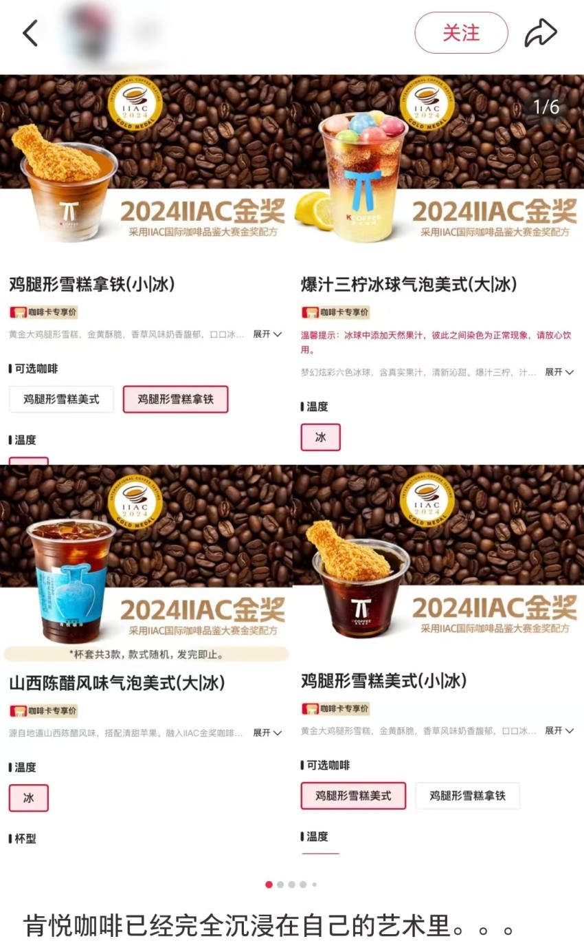 肯悦咖啡亦在今年持续探索风味边界,被网友调侃“已沉浸于自我艺术表达”。据悉,该品牌年内陆续上线了山西陈醋气泡美式、吮指原味鸡风味拿铁、五仁蛋挞拿铁、万事大吉汤圆加朵浪漫等多款创意产品。其中陈醋气泡美式因搭配大胆,在小红书平台相关笔记超29万篇,热度居高不下。