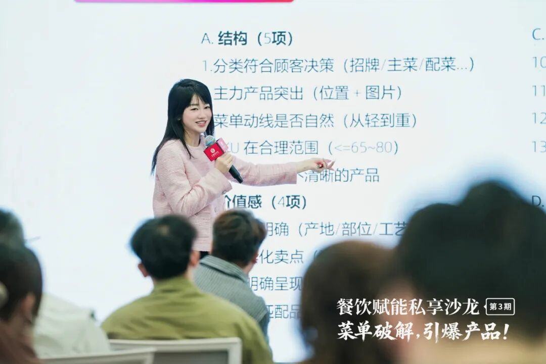 活动特邀菜单策略与产品定位专家李蔚老师担任主讲嘉宾,依托真实案例与数据工具,系统解析菜单重构与产品力打造的核心方法论,为现场餐饮从业者呈现了一场兼具理论深度与实操价值的专业分享。