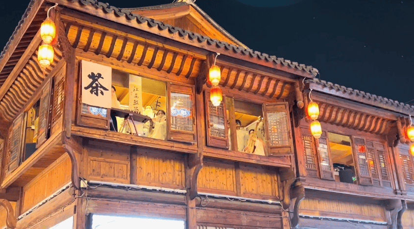 晚上8点,江西鲲茶万寿宫店内灯火通明,游客晓玲刚在社交平台晒出自己手捧“瓦罐浮梁雪山奶茶”的照片,便沉浸于店内汉服乐师带来的古风夜演中。对她而言,在景区打卡一杯具有地方特色的奶茶,早已成为旅行不可或缺的一环。
