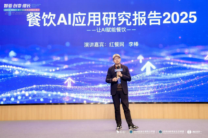 峰会期间的重要议程之一,是11月22日上午红餐成长社联合创始人李棒发表题为《中国餐饮AI应用研究报告2025》的主题演讲。他在报告中全面梳理了AI在餐饮行业的当前应用场景与发展路径,并展示了相关技术落地的最新成果及未来演进方向。