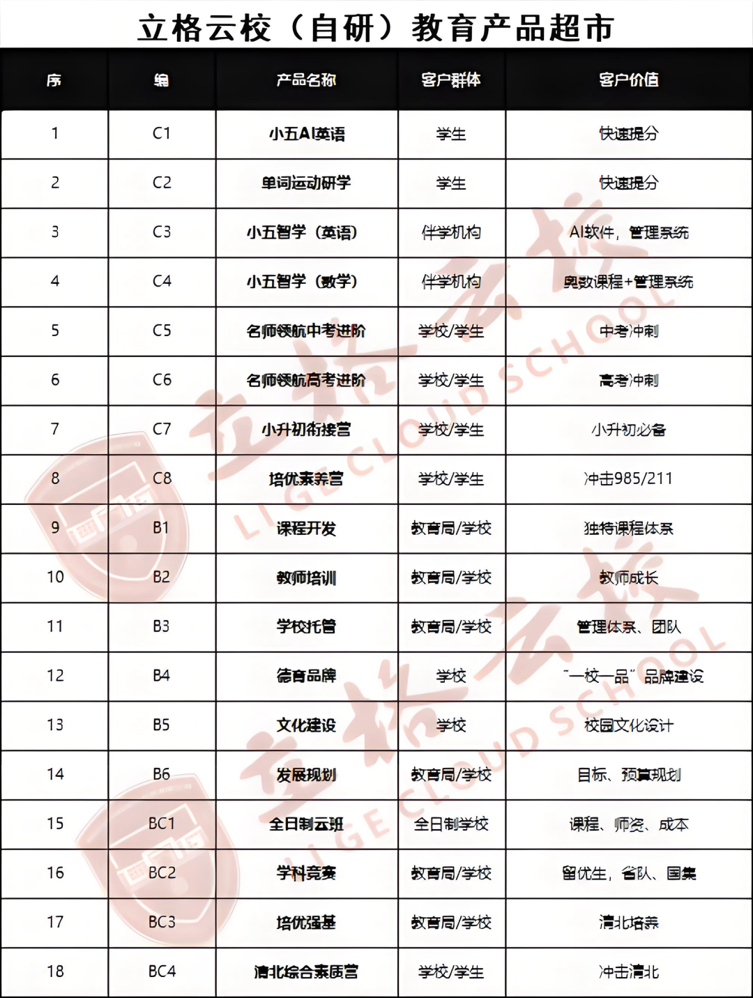 立格云校18大核心教育产品