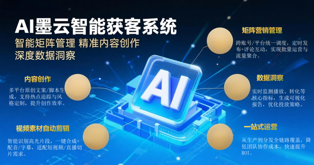 公司为合伙人提供从产品培训、市场推广到客户服务、售后支持的一站式扶持体系,结合“AI墨云智能获客系统”,实现内容创作、矩阵管理、数据洞察全链路覆盖,提升运营效率与转化率。