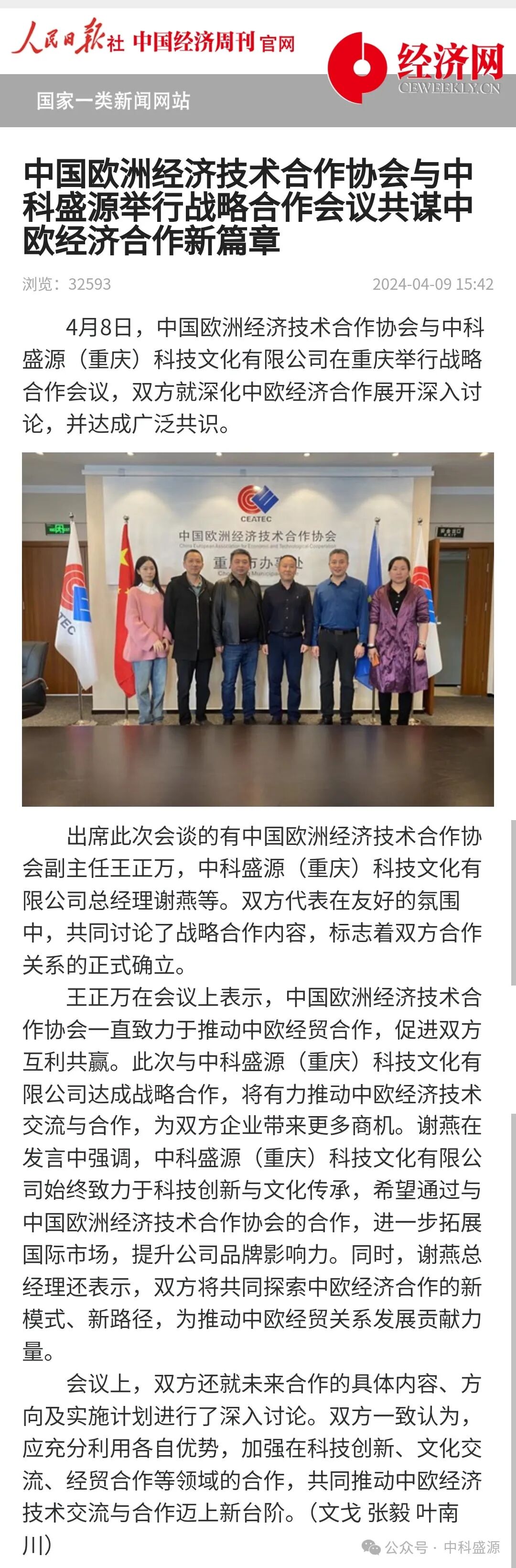 中国欧洲经济技术合作协会与中科盛源举行战略合作会议共谋中欧经济合作新篇章
