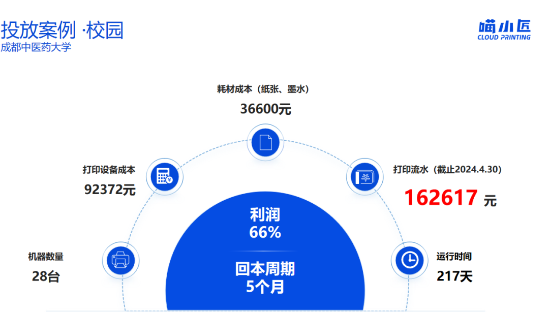 全场景覆盖:设备可投放于社区、商超、校园、医院、政务中心等高频打印场所,需求稳定,客流持续。