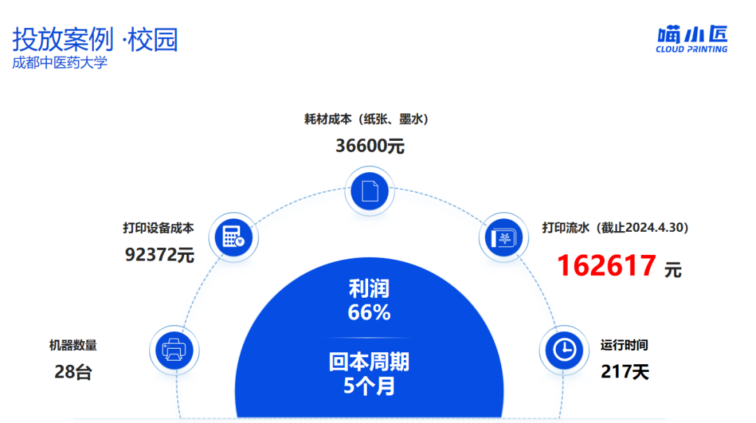 投入清晰:主要成本在于专业打印设备、智能云盒及系统部署,无需高昂的店面租金与大量人力。