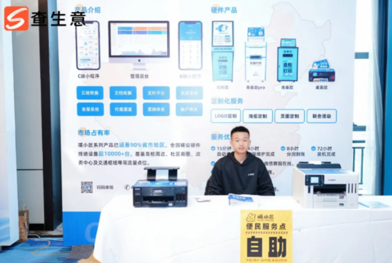 品牌展台前,超过20个项目完成路演,其中喵小匠的智慧打印方案因其轻资产、高复购特性备受资本关注。
