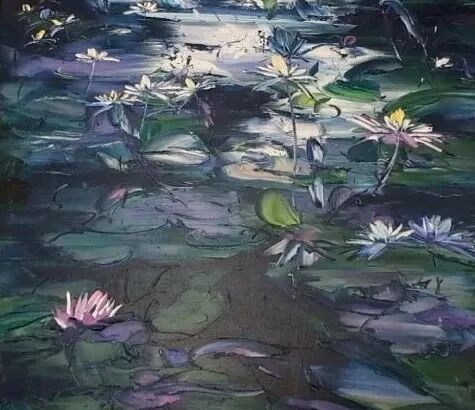 陈岚从小喜爱睡莲,小时候的她就认为自己是莲,是漂浮在水面之上,翱翔在天空里的一朵莲。她十岁开始画画,从国美油画系毕业后和普林斯顿艺术院签约,进行自主创作。也就是在2000年前后,陈岚感觉自己进入到了创作状态之中,从那时起,睡莲就成了她终生的创作主题。
