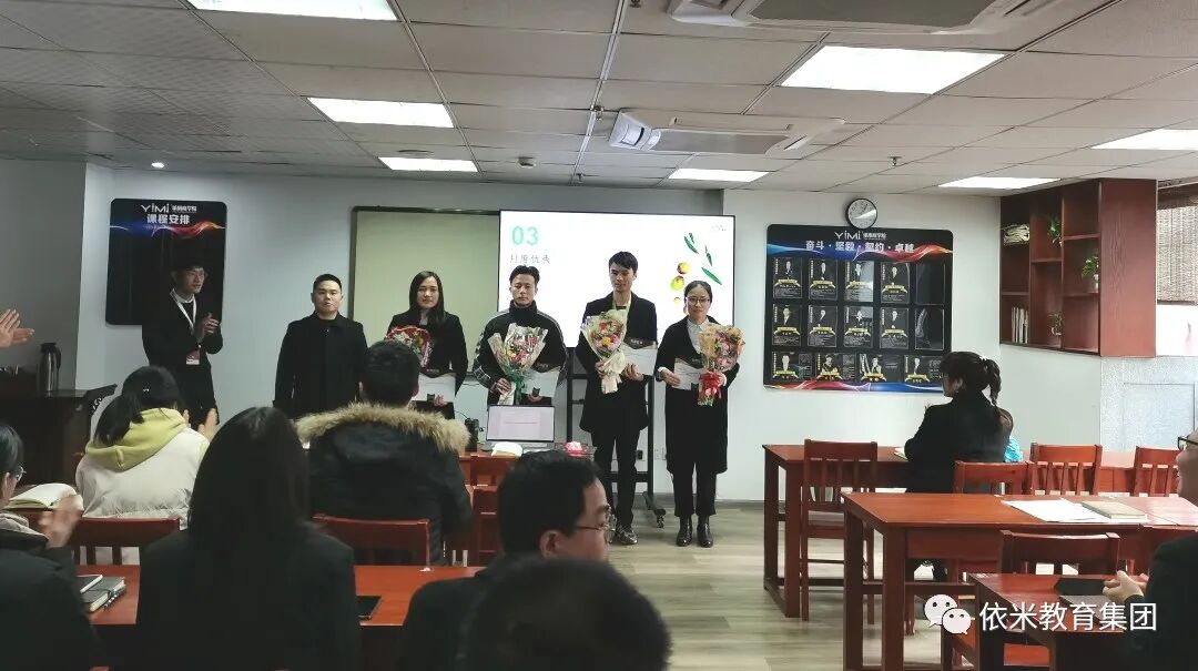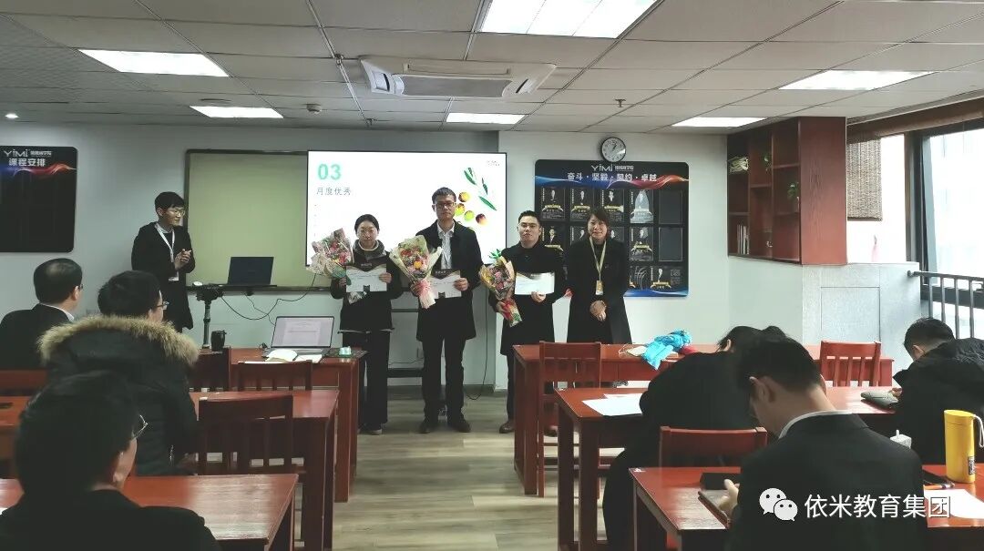 接下来是月度优秀表彰环节。恭喜总部职能部门郭怀斌老师、王鼎老师和蔡婷老师,依米书院总部孙晓梅老师、杨茂强老师和胡慰伦老师,箭金学堂总部杨丽老师和木朝军老师荣获“月度优秀”称号。