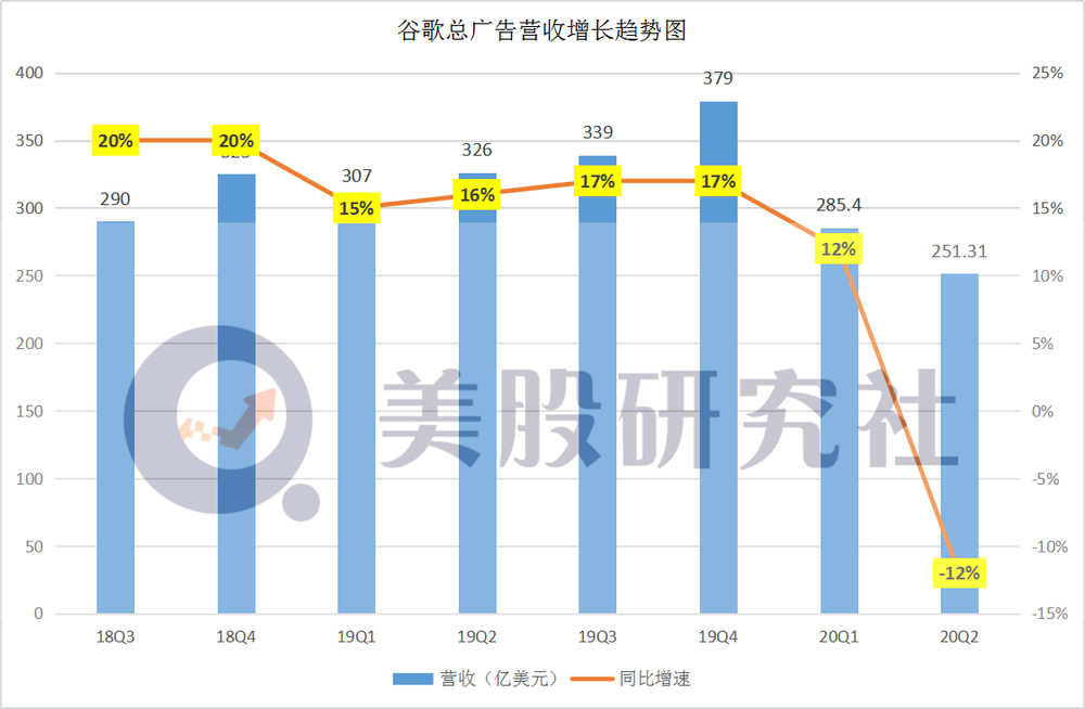 谷歌核心收入趋势图