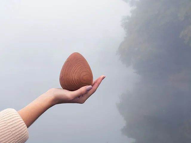 整颗蛋都是纯手工制作,遵循斯洛文尼亚木工艺的古老传统,表面精心打磨后形成美丽的木头花纹,充分发挥木头材质能带给人的抚慰作用。
