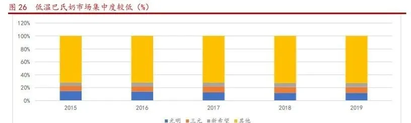 目前,低温奶品牌中的前三分别是:光明、三元和新希望,蒙牛和伊利两巨头也在发力追赶。不过,有别于常温奶市场,低温奶市场的品牌集中度还较低,简单来说,一众乳企仍处于“军阀割据,各自为王”的阶段。