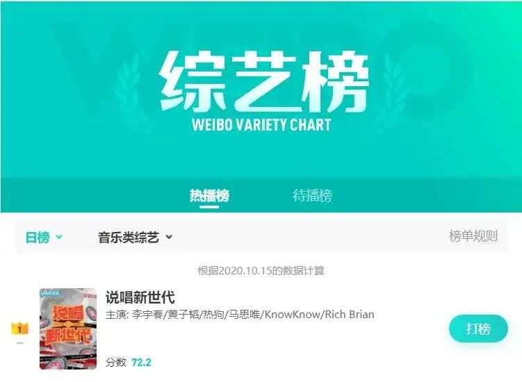 口碑之外,截止10月16日,《说唱新世代》共登陆微博热搜榜单79次,且多次登上微博综艺榜音乐类周榜、日榜第一。